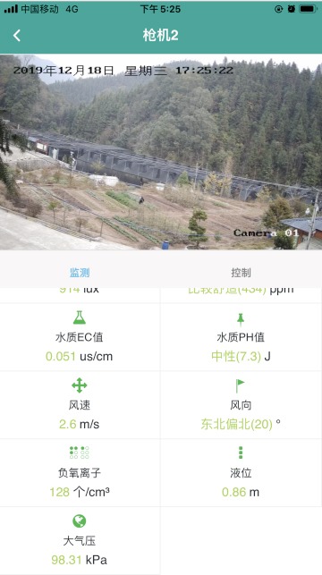 電腦PC端或手機APP實時監測澆灌石斛噴灌水源的EC值及PH值,蓄水池液位等指標,聯動澆灌水泵,實現自動智能澆灌;種植基地的所有監測環境及水質指標數據,每間隔一小時自動保存監測數據,所有環境數據可以歷史查看及追溯性;